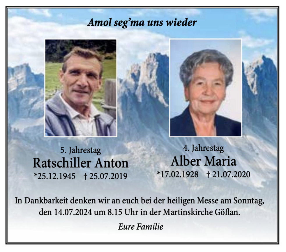 * 17. Februar 1928 in Latsch † 21. Juli 2020 in Göflan
