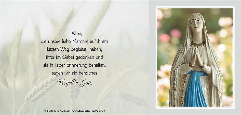 Ein besonderer Dank gilt der Hausärztin Frau Dr. Claudia Reier und allen, die unsere Mamme besucht haben.