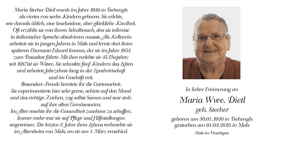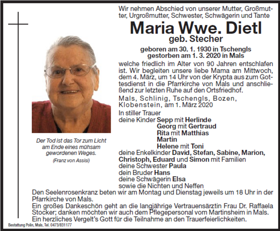 Ein herzliches Vergelt’s Gott für die Teilnahme an den Trauerfeierlichkeiten.