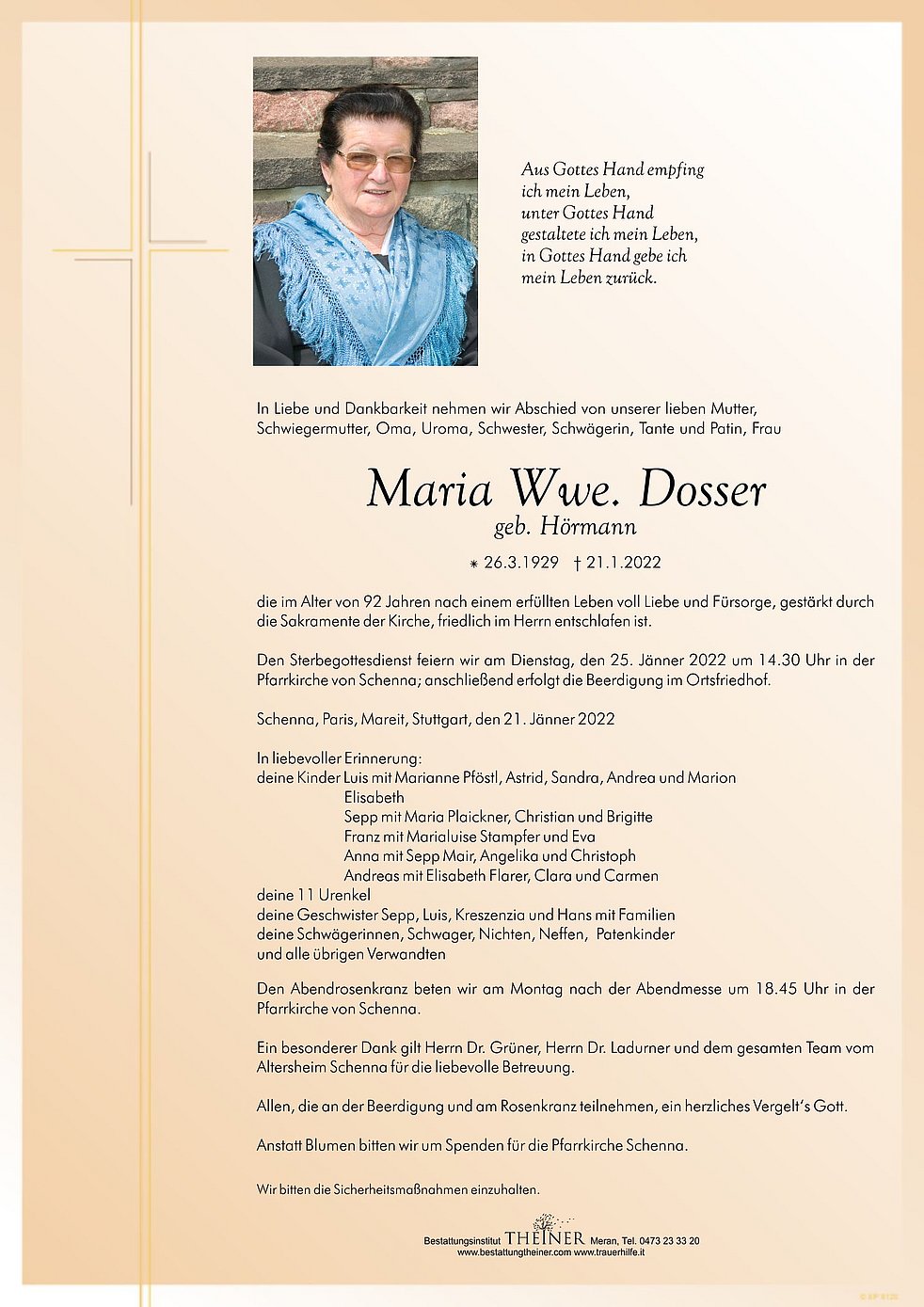 Den Sterbegottesdienst feiern wir am Dienstag, den 25. Jänner 2022 um 14.30 Uhr in der Pfarrkirche von Schenna; anschließend erfolgt die Beerdigung im Ortsfriedhof.