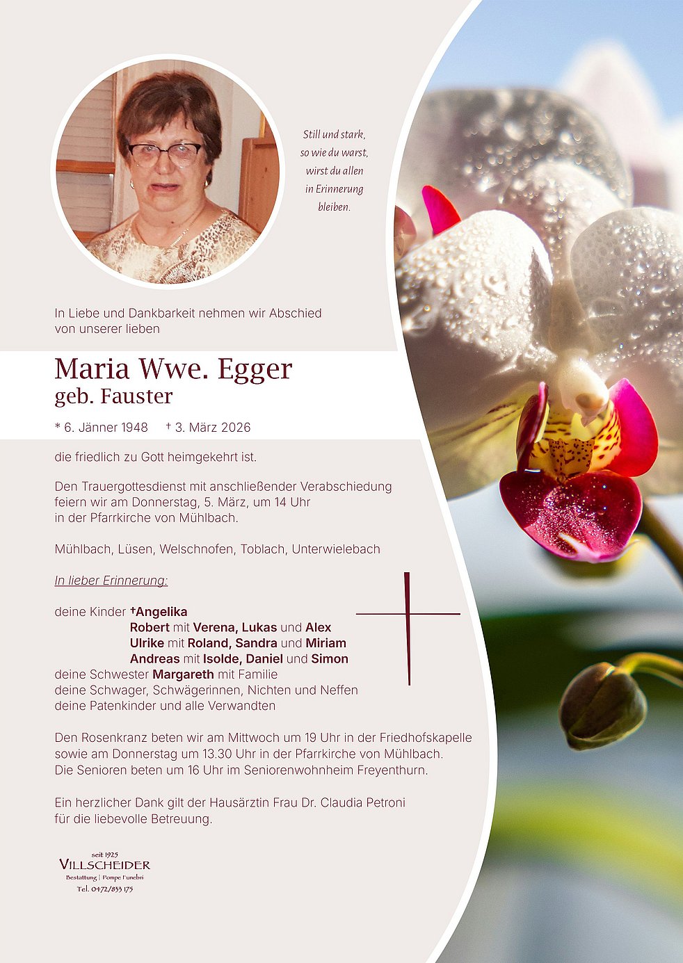 Begräbnisgottesdienst: 05.03. - 14:00 Uhr Mühlbach