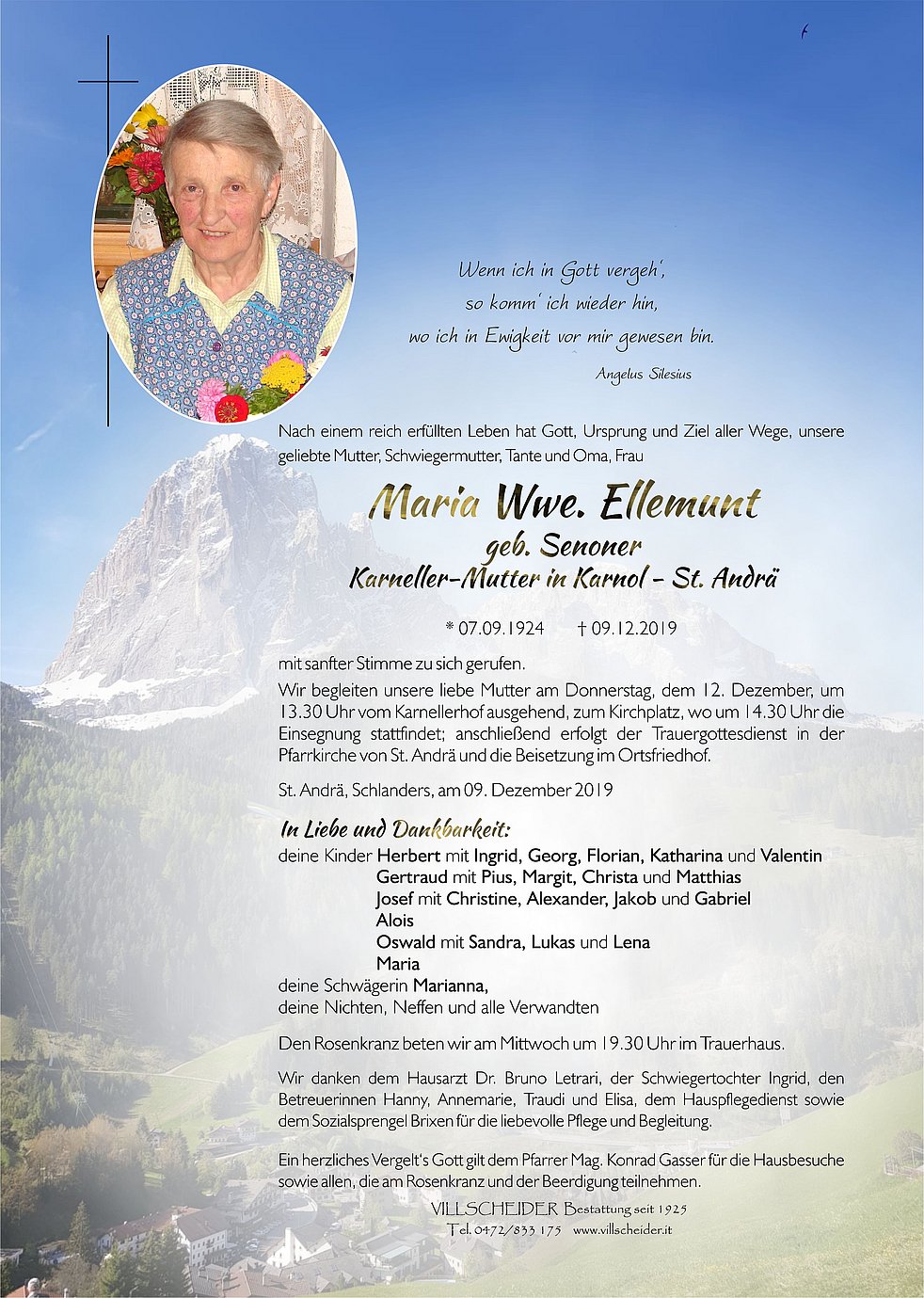 Begräbnisgottesdienst: 12.12. - 14:30 Uhr St. Andrä