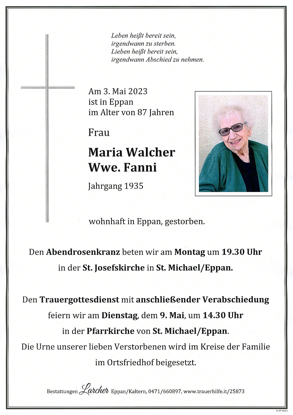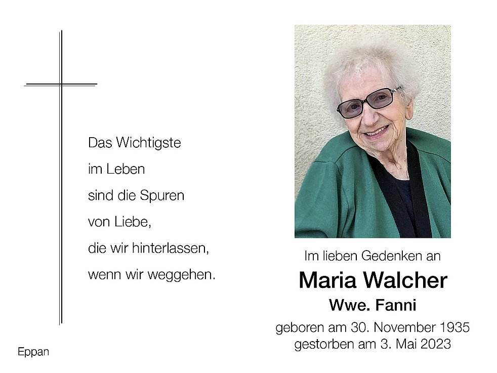 Den Trauergottesdienst mit anschließender Verabschiedung feiern wir am Dienstag, dem 9. Mai um 14.30 Uhr in der Pfarrkirche von St. Michael/Eppan.