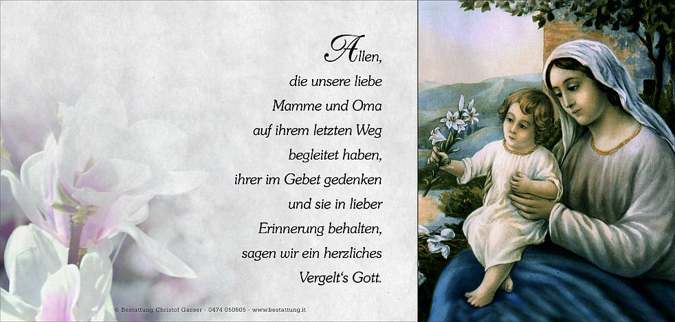 Vergelt’s Gott allen, die an den Seelenrosenkränzen und an der Beerdigung teilnehmen.