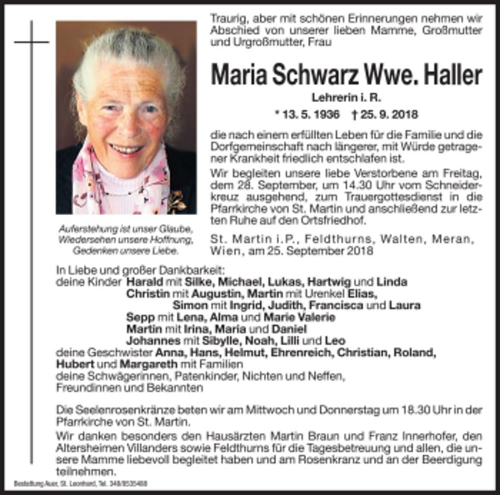 Maria Schwarz Wwe. Haller