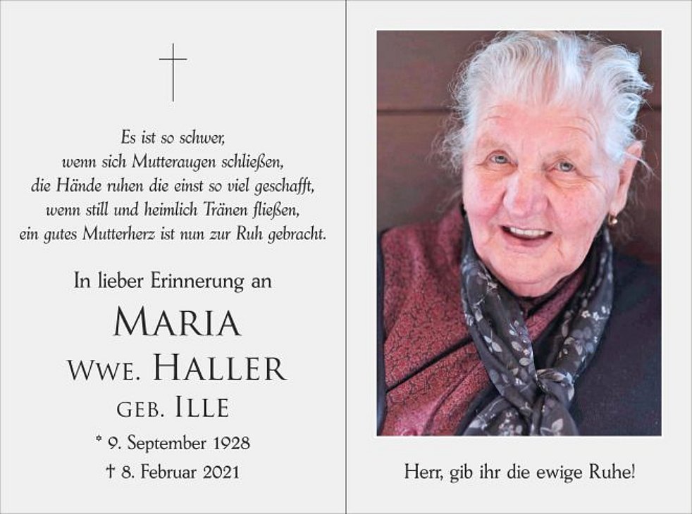 Unsere liebe Mamma und Oma ist nach kurzer schwerer Krankheit für immer von uns gegangen. Trotz ihrer Beschwerden war sie niemals mutlos, ihre Kraft wird uns immer ein Beispiel sein. Sie hat uns immer in unserem Leben begleitet, unser Wohl lag ihr sehr am Herzen. Sie wird uns unendlich fehlen.