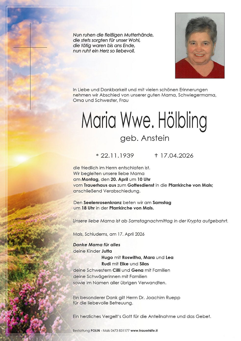 Ein herzliches Vergelt‘s Gott für die Anteilnahme und das Gebet.