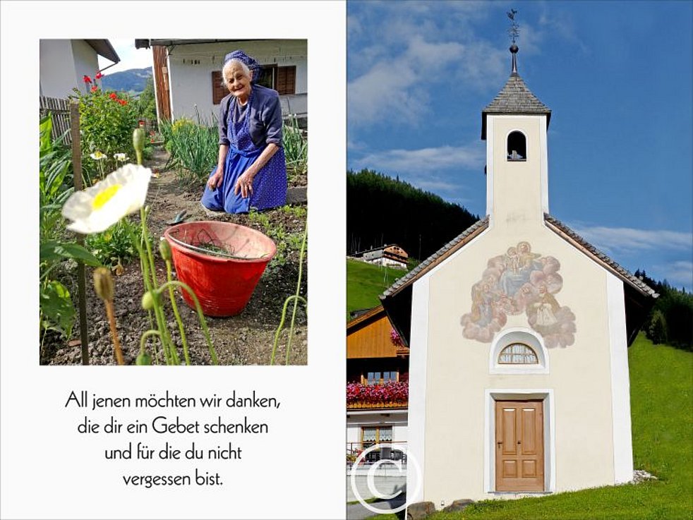 Ein besonderer Dank gilt dem Hausarzt Dr. Martin Vieider und den Sprengel-schwestern für die liebevolle Begleitung.