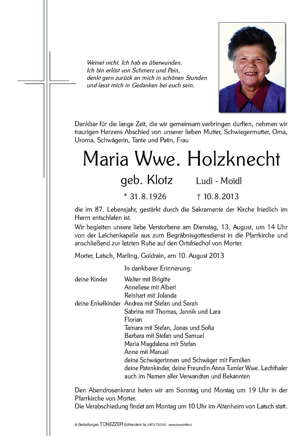 Wir begleiten unsere liebe Verstorbene am Dienstag, 13. August, um 14 Uhr von der Leichenkapelle aus zum Begräbnisgottesdienst in die Pfarrkirche und anschließend zur letzten Ruhe auf den Ortsfriedhof von Morter.