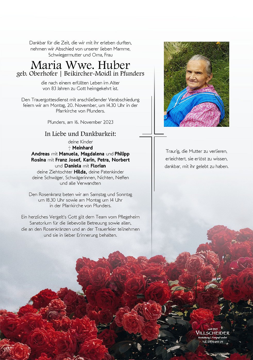 Zum Heimgang eurer lieben Mutter Maria wünschen wir euch viel Kraft und Gottvertrauen in dieser für euch sehr schweren Zeit des Abschieds.