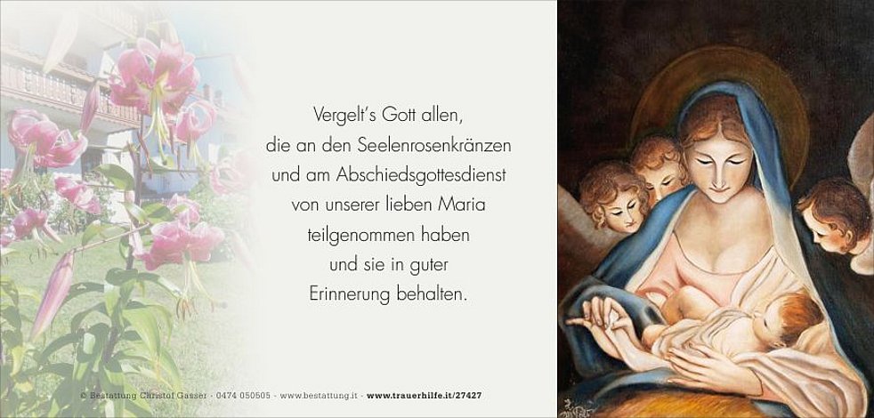 Vergelt’s Gott allen, die an den Seelenrosenkränzen und an der Trauerfeier teilnehmen.