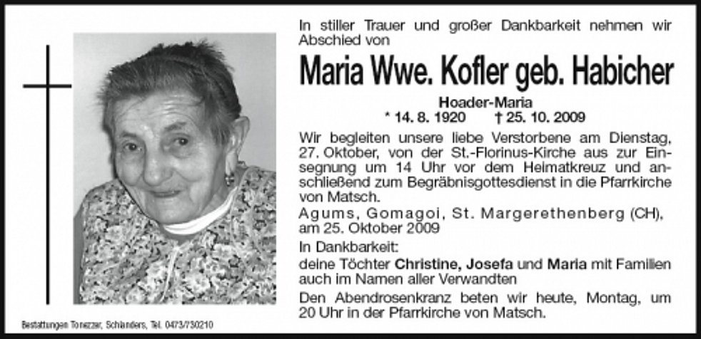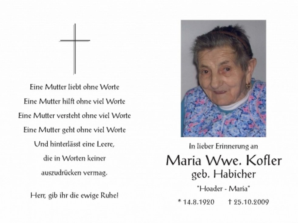 Maria Wwe. Kofler geb. Habicher