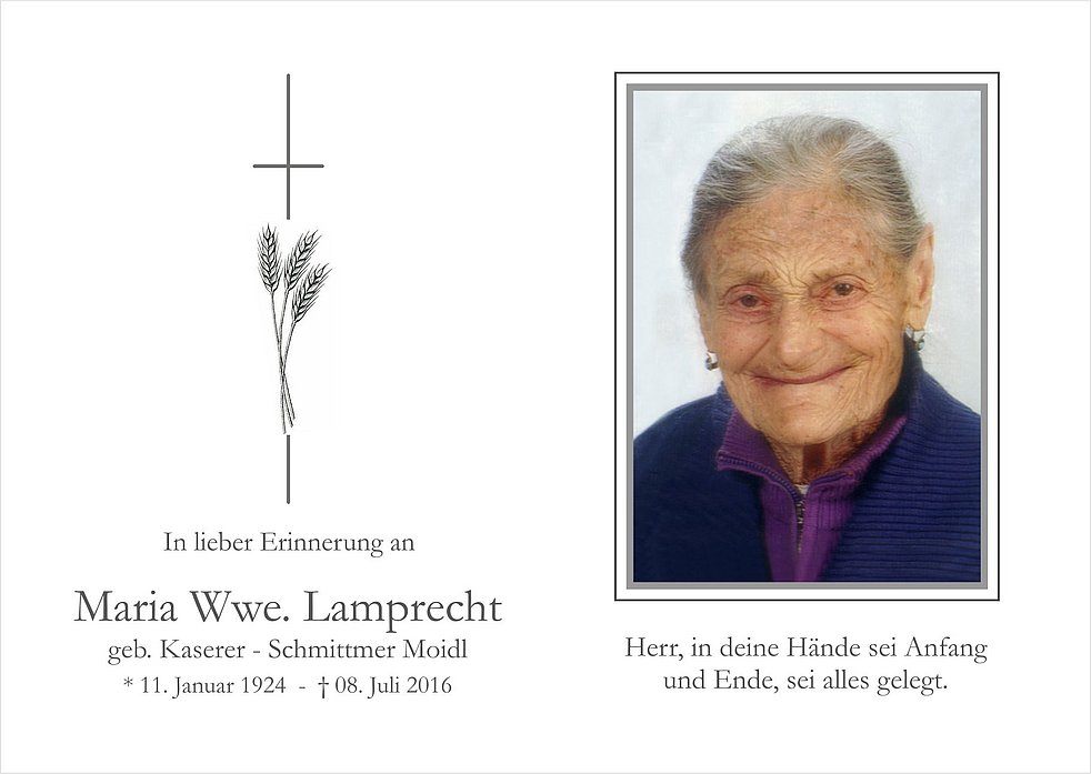 Ein herzliches Vergelt´s Gott geht an alle, die an den Rosenkränzen und an der Beerdigung teilnehmen, ihrer im Gebete gedenken und sie in lieber Erinnerung behaltenen.
