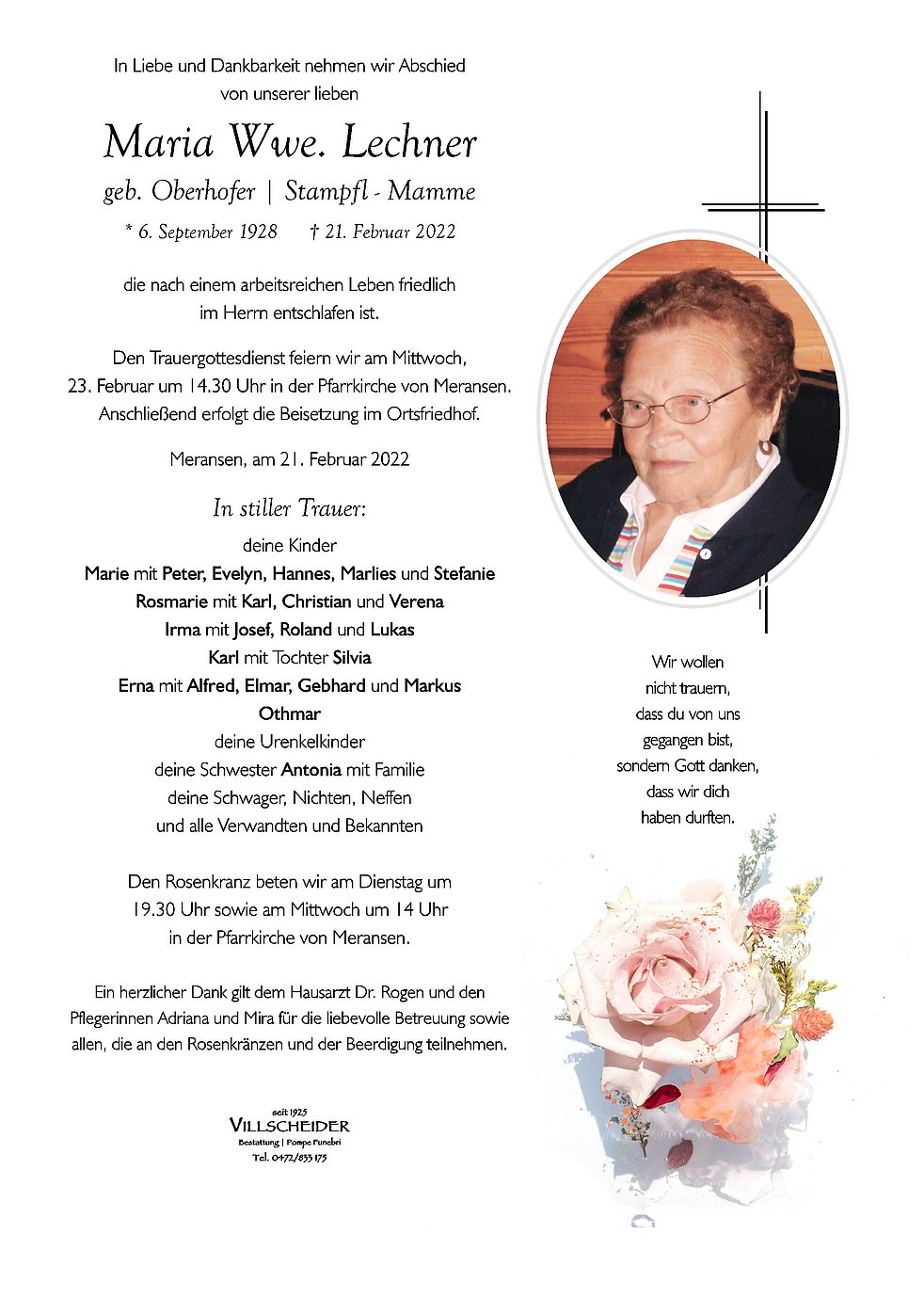 Liebe Kinder mit Familien, mein herzliches Beileid zum Ableben eurer lieben Mamma.