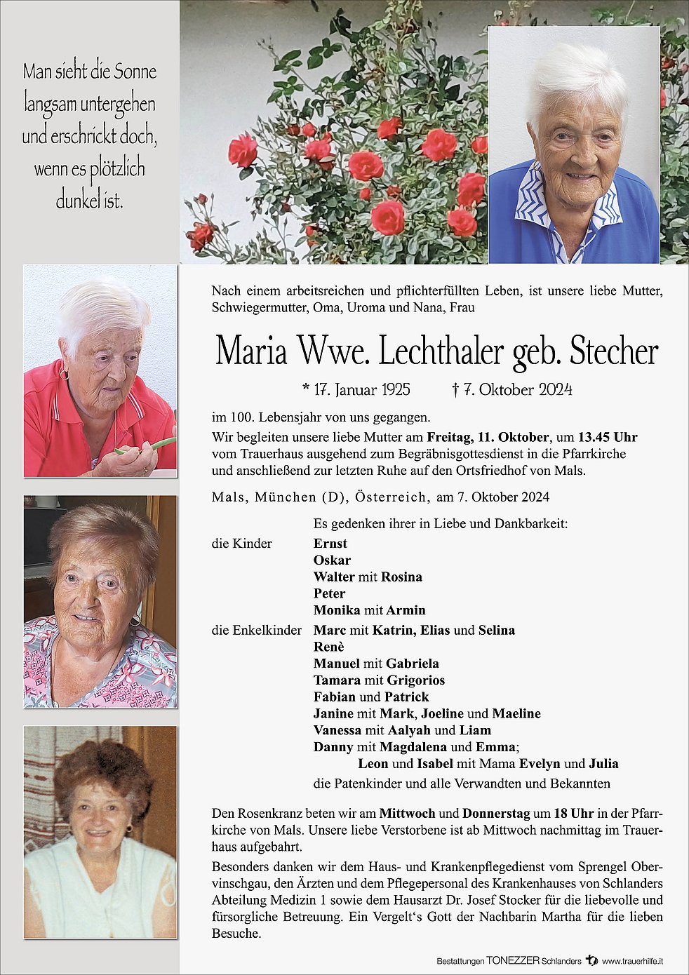 Ich bin in Gedanken bei Euch und wünsche Euch viel Kraft in der Zeit des Abschieds.Eure Mutter war ein besonderer Mensch.Sehr fürsorglich und immer bei der Arbeit.So kannte ich sie..Ich werde sie in lieber Erinnerung behalten