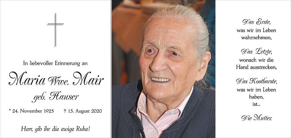 die nach einem erfüllten Leben, gestärkt durch Sakramente der Kirche, im 95. Lebensjahr zu Gott heimgekehrt ist.
