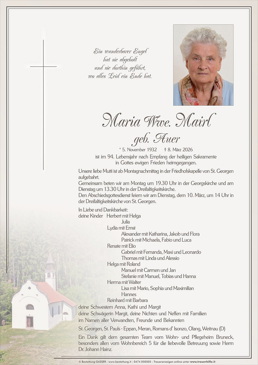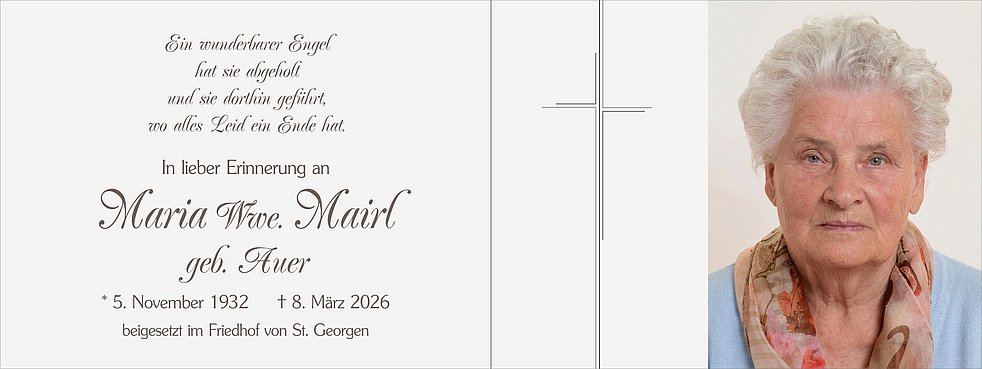 Unsere liebe Mutti ist ab Montagnachmittag in der Friedhofskapelle von St. Georgen aufgebahrt.