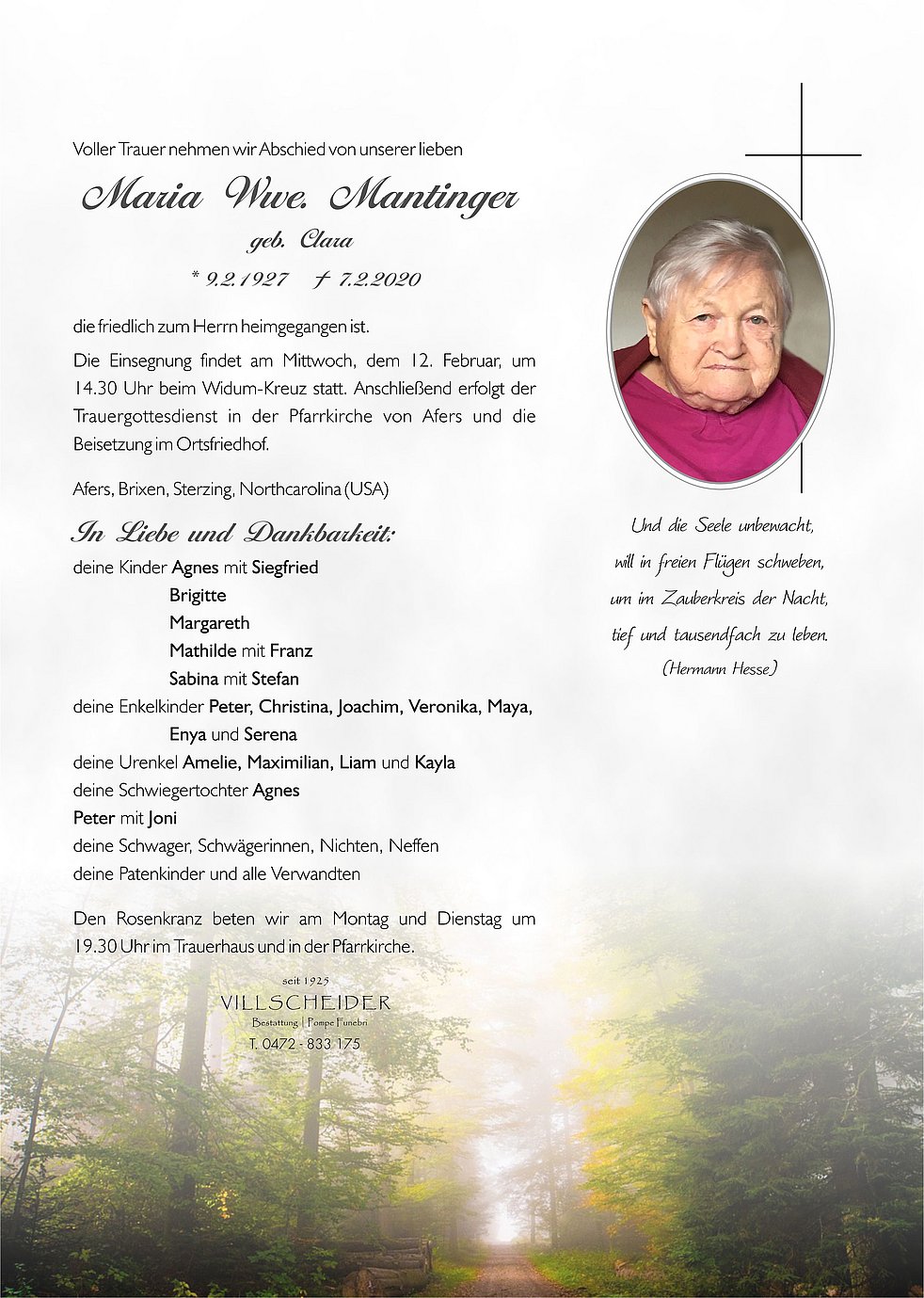Begräbnisgottesdienst: 12.02. - 14:30 Uhr Afers