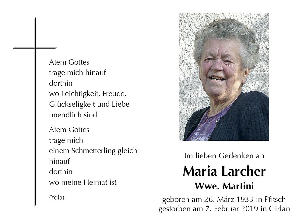 Maria Wwe. Martini geb. Larcher
