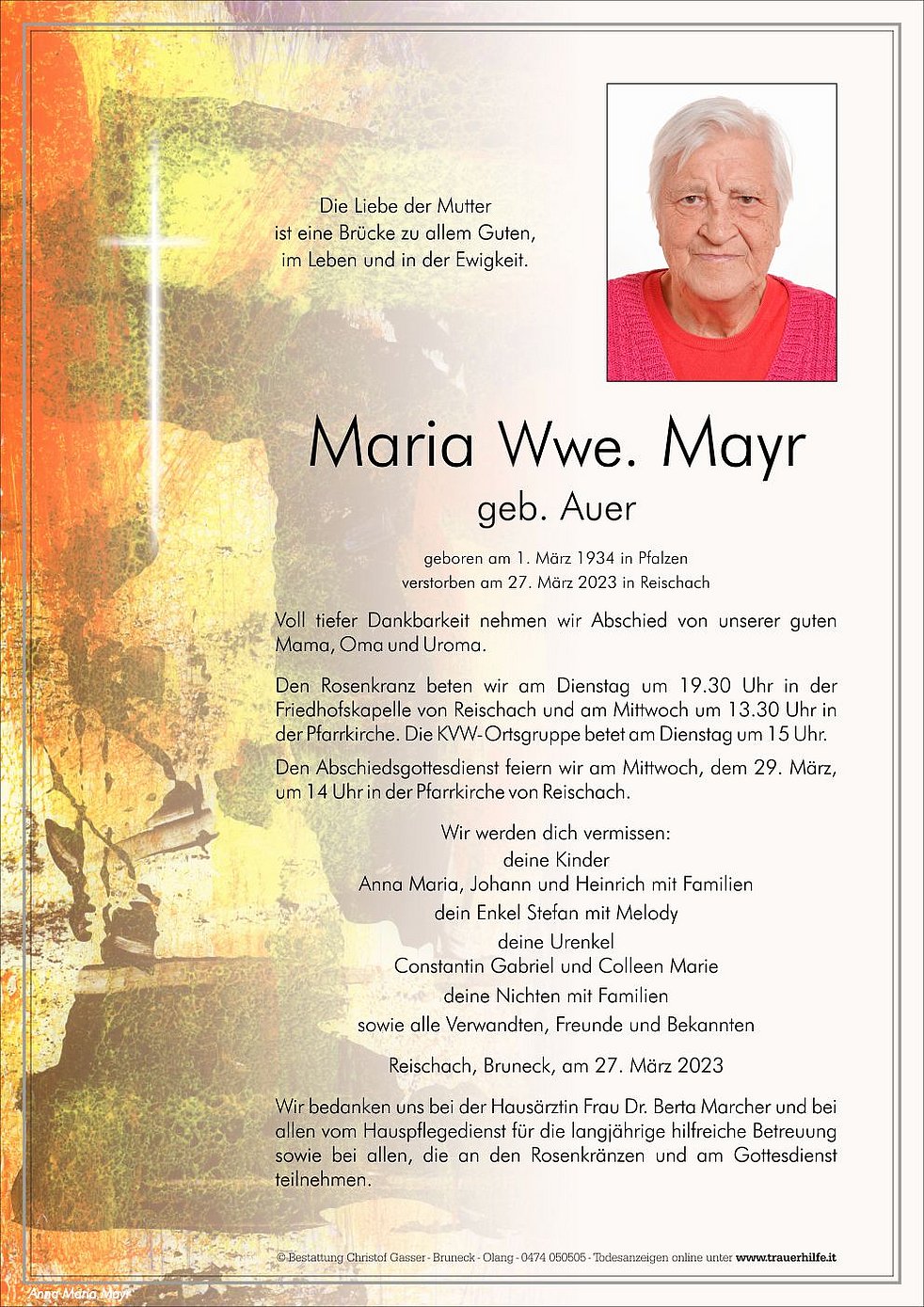 Wir bedanken uns bei der Hausärztin Frau Dr. Berta Marcher und bei allen vom Hauspflegedienst für die langjährige hilfreiche Betreuung sowie bei allen, die an den Rosenkränzen und am Gottesdienst teilnehmen.