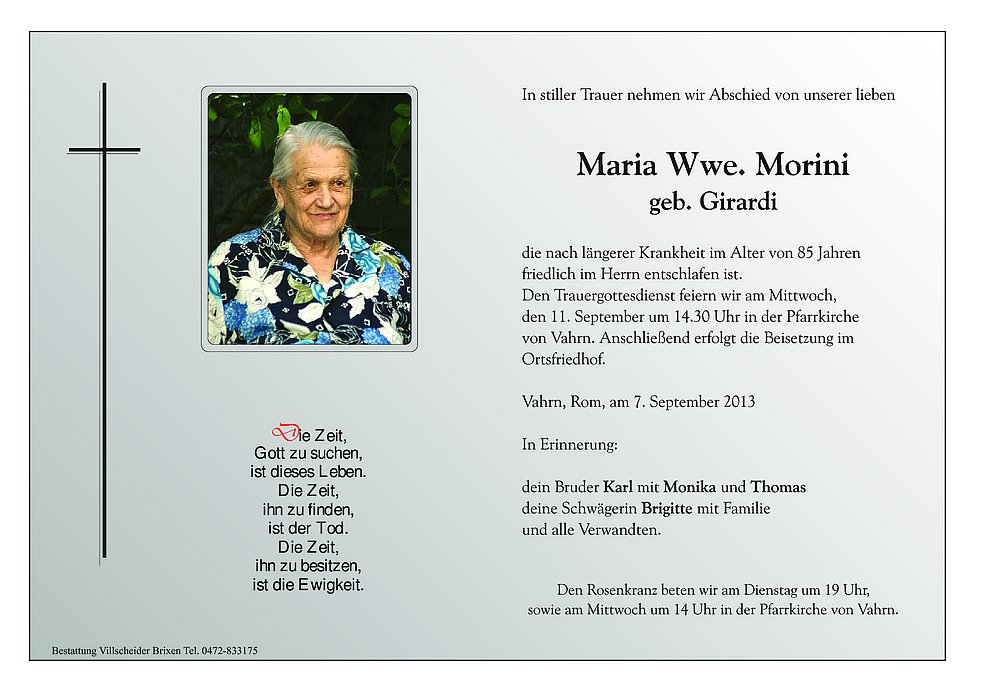 von Vahrn. Anschließend erfolgt die Beisetzung im Ortsfriedhof.