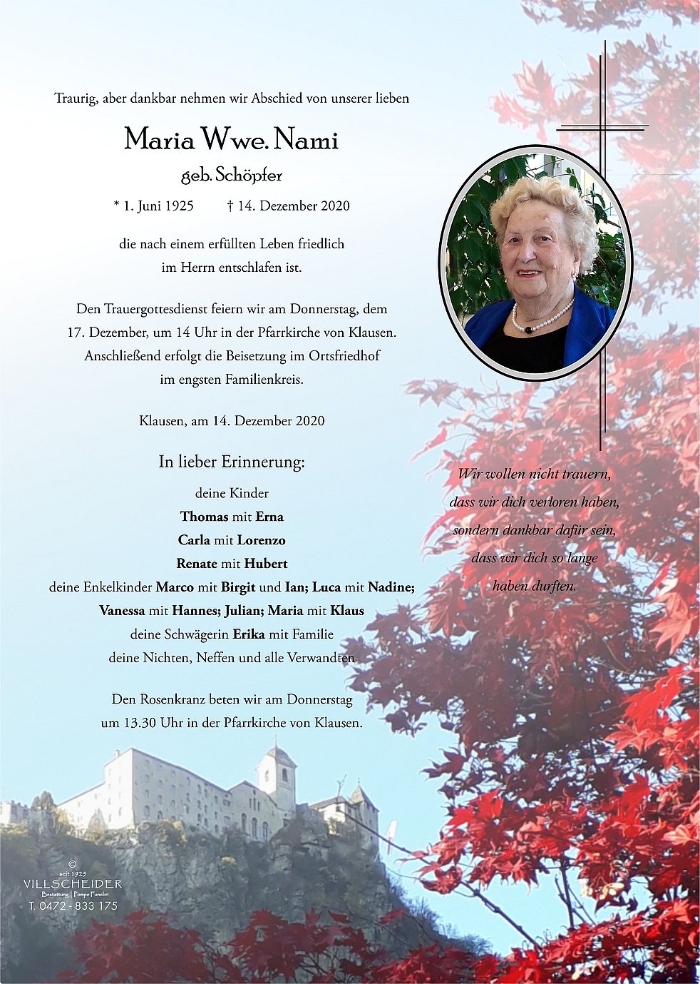 Lieber Tomi,wir wünschen Dir und deiner Familie,dass die vielen schönen Erinnerungen an Deine liebe Mutter Euch Trost und Kraft in dieser schweren Zeit schenken. Deine Freunde Urban und Hildegard mit Familie