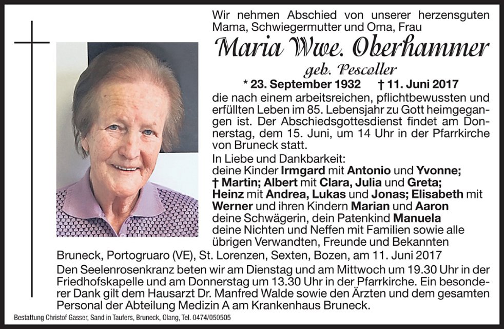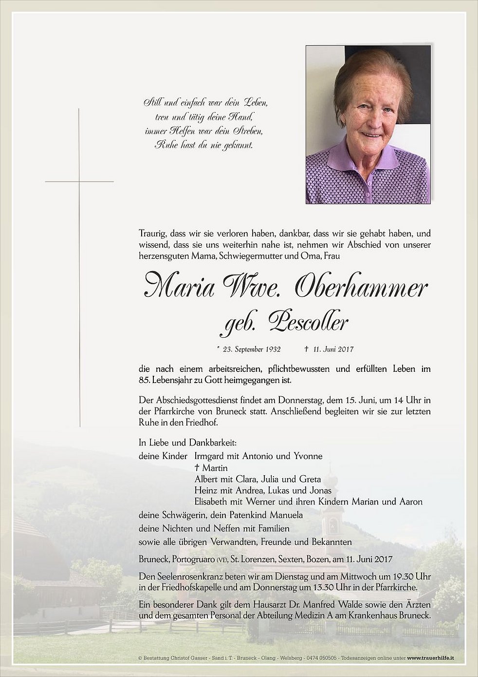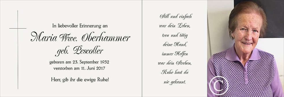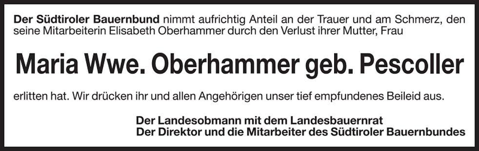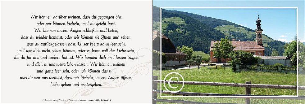 Der Abschiedsgottesdienst findet am Donnerstag, dem 15. Juni, um 14 Uhr in der Pfarrkirche von Bruneck statt. Anschließend begleiten wir sie zur letzten Ruhe in den Friedhof.