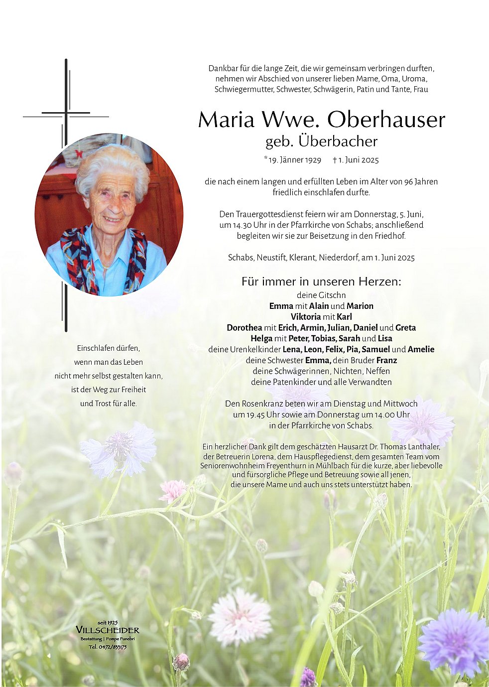 Begräbnisgottesdienst: 05.06. - 14:30 Uhr Schabs
