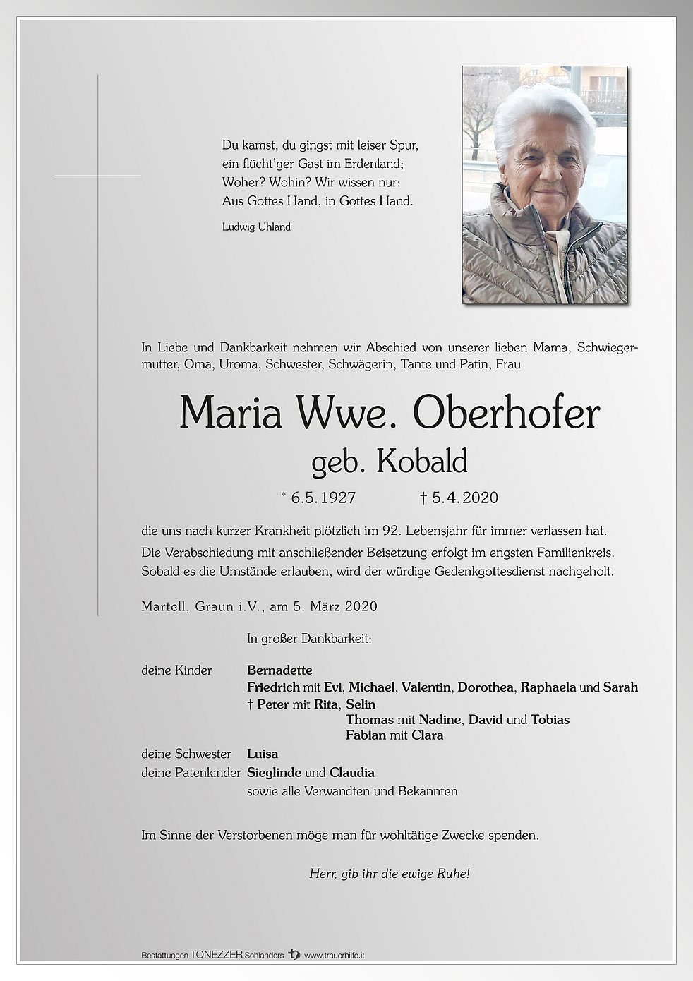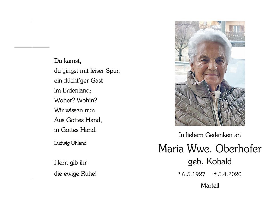 Im Sinne der Verstorbenen möge man für wohltätige Zwecke spenden.