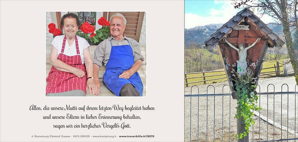 Ein besonderer Dank gilt dem Hausarzt Herrn Dr. Stefan Oberheinricher sowie dem gesamten Team der Tagesbetreuung "Memory" für die liebevolle und kompetente Begleitung.