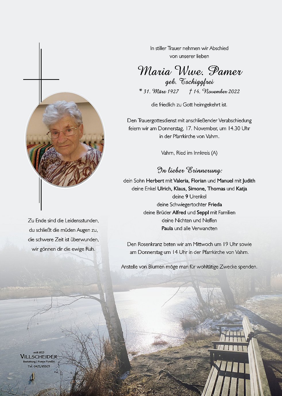 gerne erinnern wir uns an die gemeinsame Zeit mit dir: an die Wanderungen, wenn wir dich in Südtirol besucht haben, an die Spaziergänge am Vahrner See, unsere Gespräche, unser gemeinsames Lachen und die schönen Stunden. In unserer Erinnerung bleibst du lebendig und in unseren Herzen lebst du ewig! Von Herzen alles Liebe, dein Bruder Alfred.