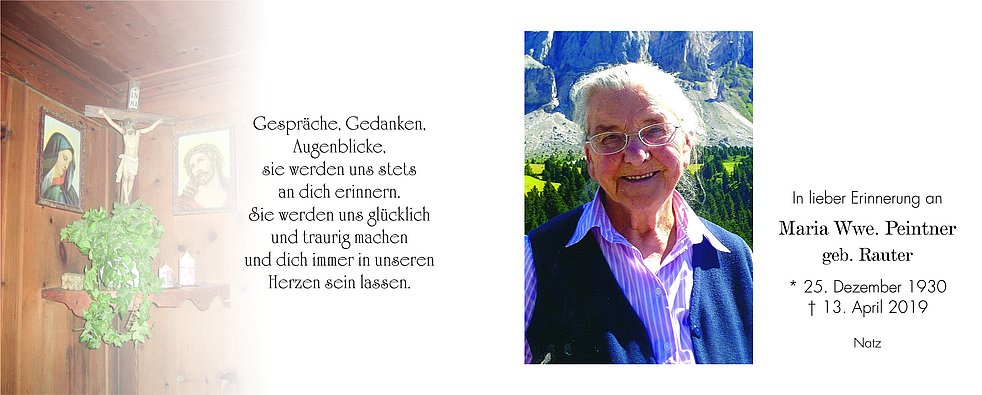 Begräbnisgottesdienst: 17.04. - 14:30 Uhr Natz