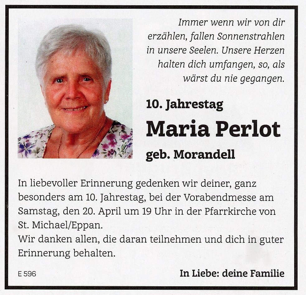 Den Abschiedsgottesdienst feiern wir am Montag, den 28. April, um 16 Uhr in der Pfarrkirche von St. Michael/Eppan. Anschließend begleiten wir unsere liebe Verstorbene zum Ortsfriedhof