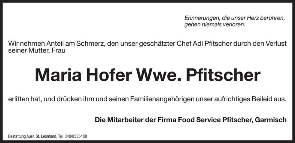 Maria Hofer Wwe. Pfitscher