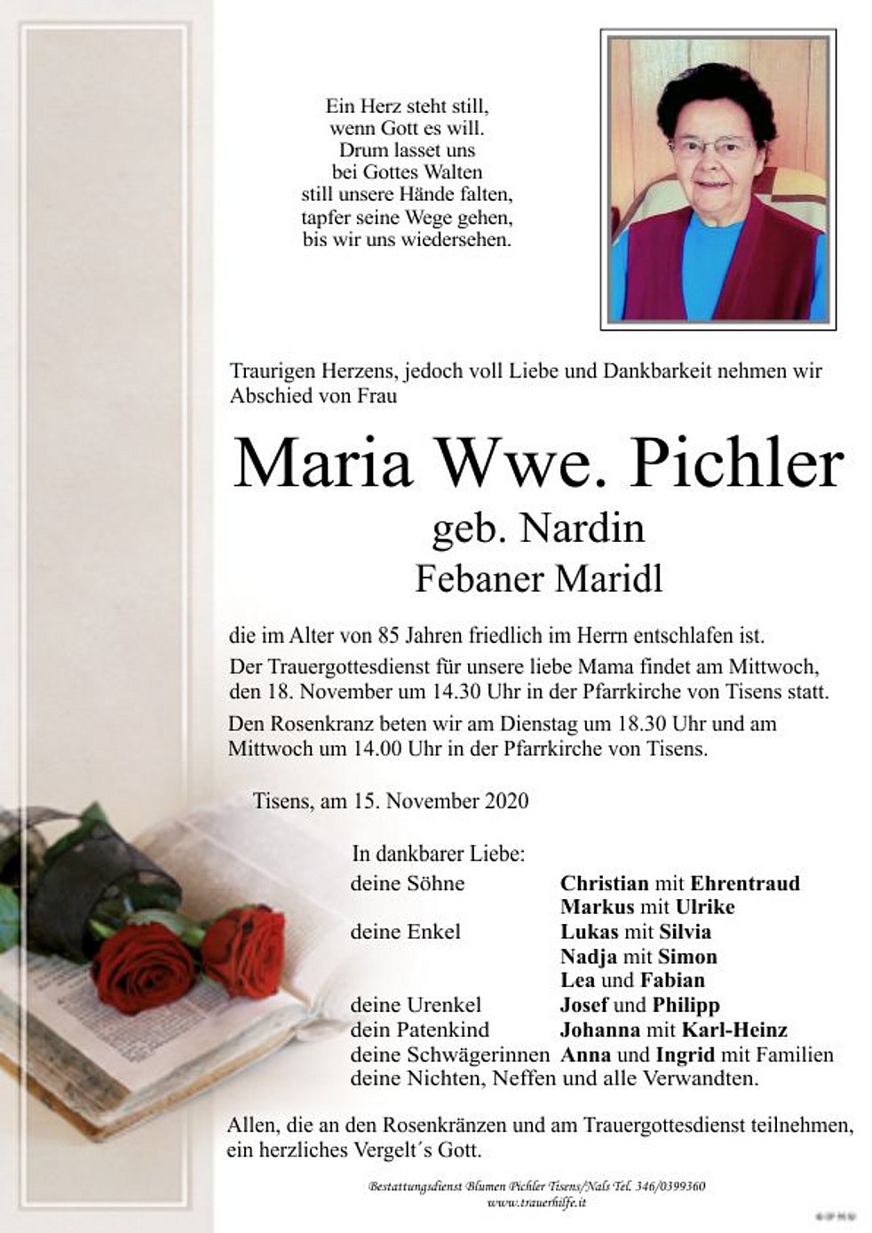den 18. November um 14.30 Uhr in der Pfarrkirche von Tisens statt.