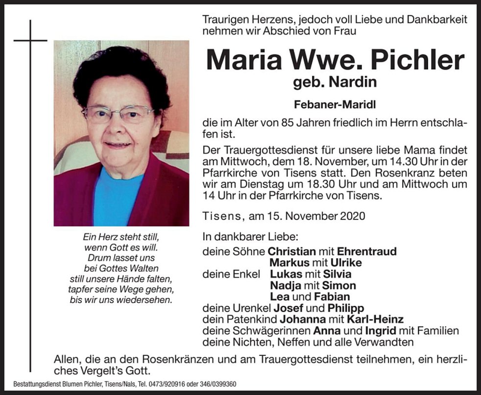 Mittwoch um 14.00 Uhr in der Pfarrkirche von Tisens.