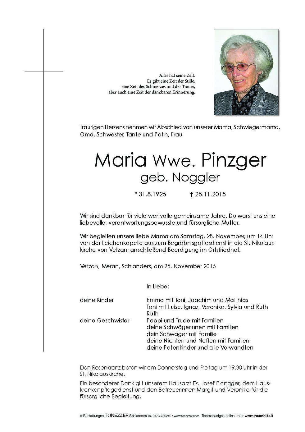 Maria Wwe. Pinzger geb. Noggler