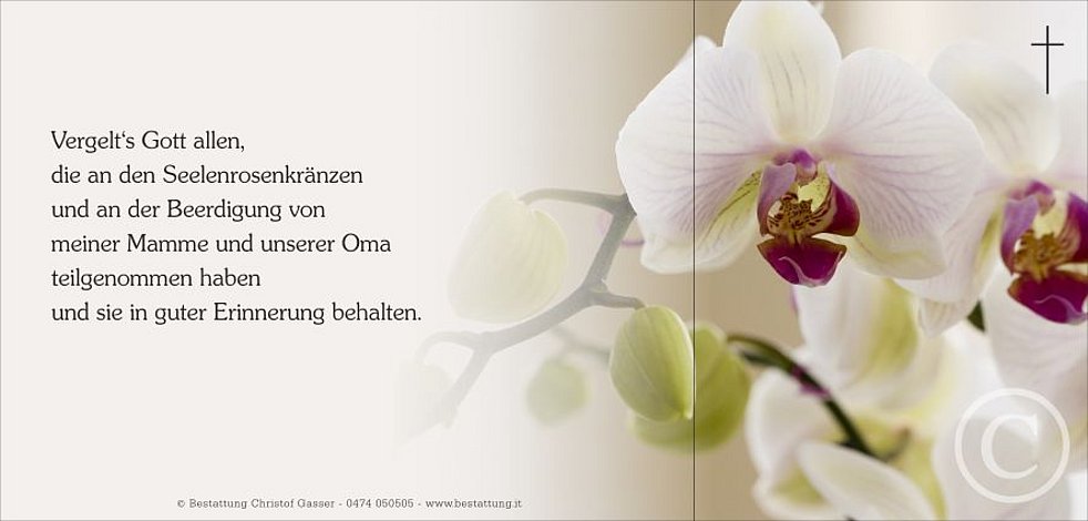 Ein besonderer Dank gilt dem Hausarzt Dr. Martin Vieider und dem gesamten Personal vom Wohn- und Pflegeheim Olang für die liebevolle Betreuung und Begleitung.