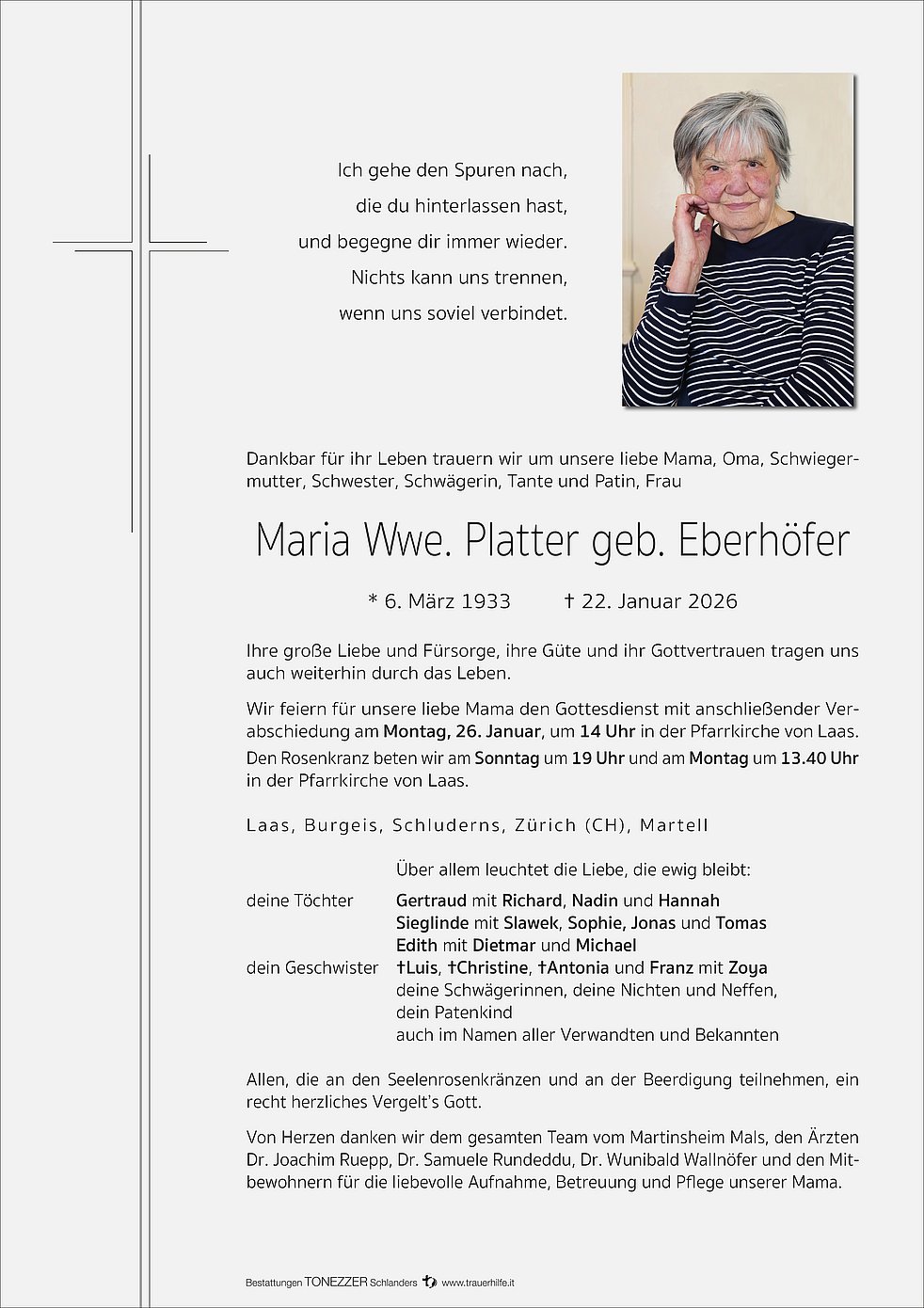 Begräbnisgottesdienst: 26.01. - 14:00 Uhr Pfarrkirche von Laas