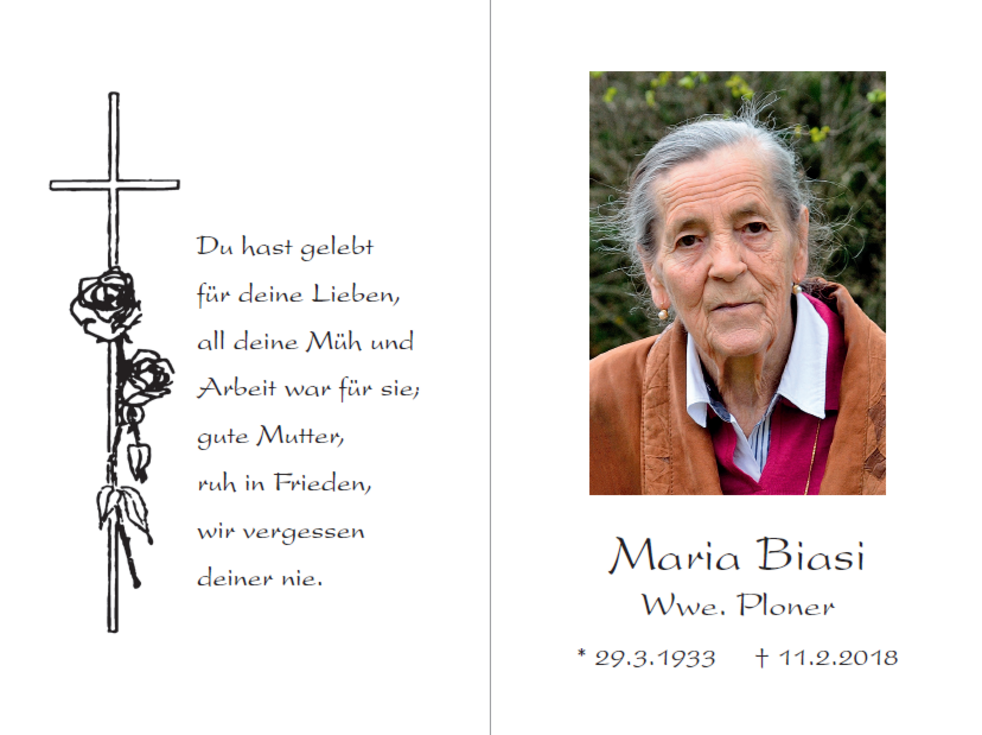 Dankbar, für die Zeit, die wir gemeinsam erleben durften, nehmen wir traurigen Herzens Abschied von unserer lieben Mutter, Schwiegermutter, Oma, Schwägerin, Frau