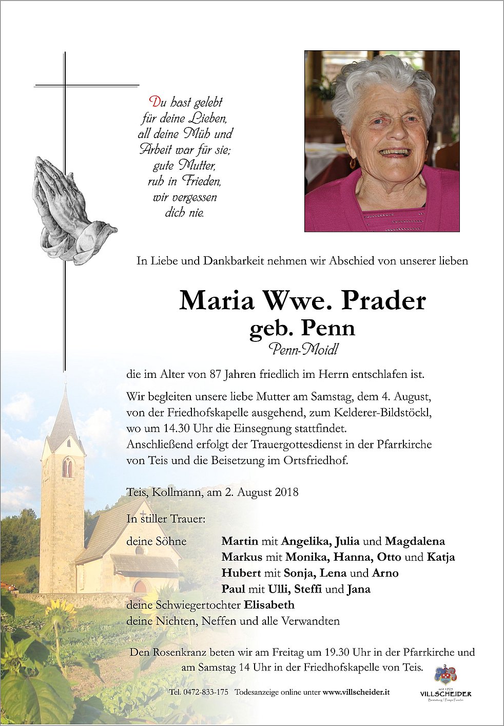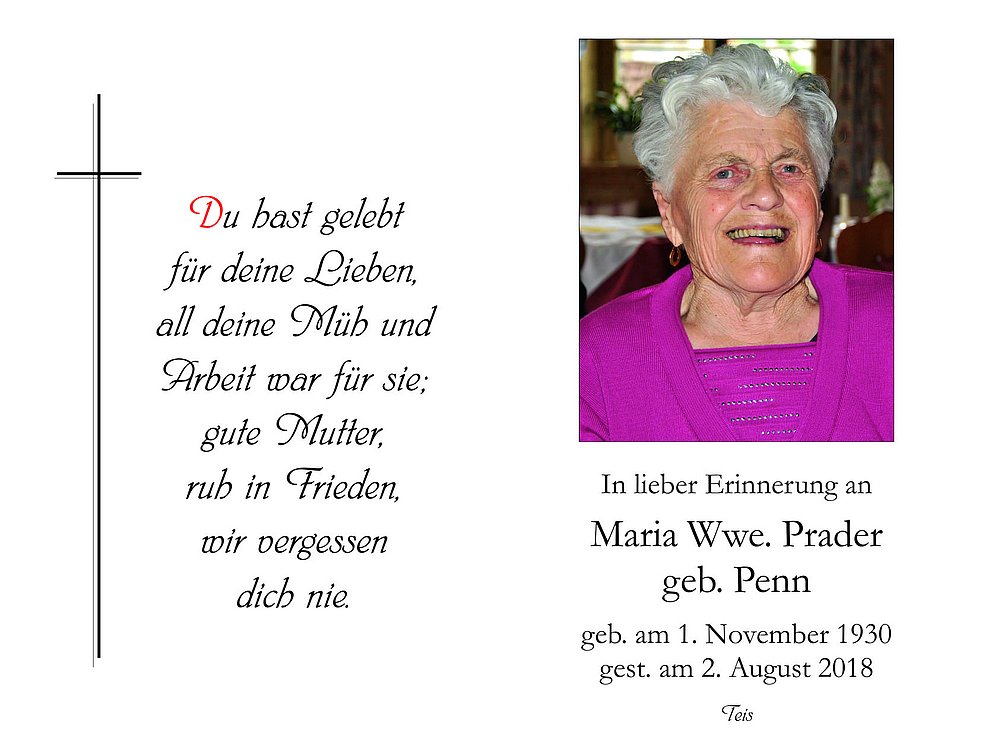 Begräbnisgottesdienst: 04.08. - 14:30 Uhr Teis