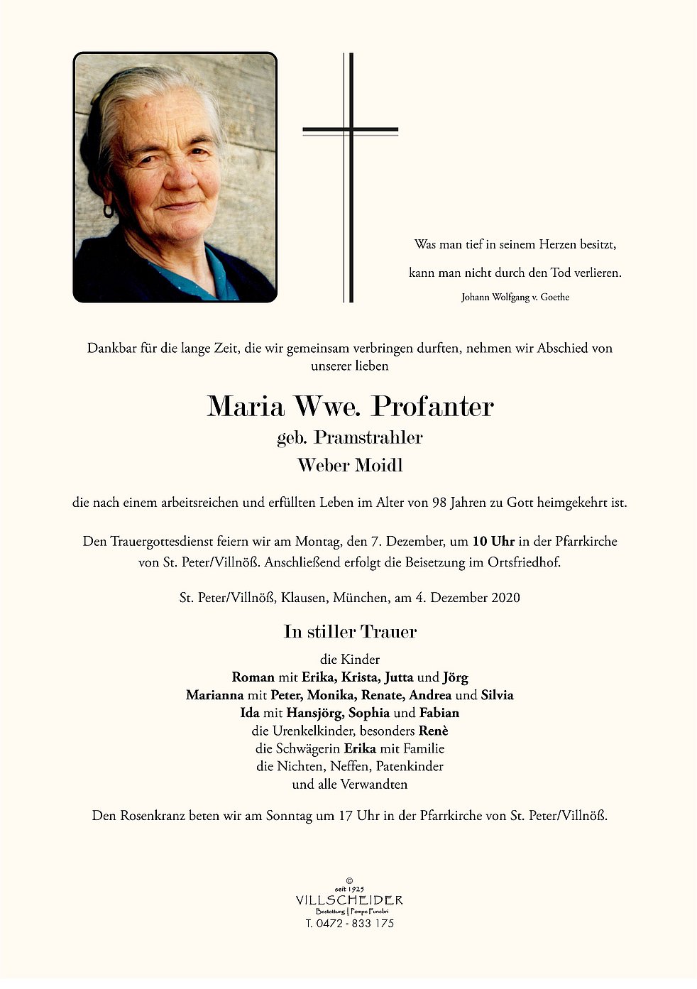 die Nachricht vom Tod eurer Mutter hat uns erreicht. Wir drücken hiermit unsere aufrichtige Anteilnahme aus. Ein langes, erfülltes Leben hat sie gemeistert, dafür zollen wir ihr Respekt. In diesen Tagen der Trauer, des Nachdenkens und Abschiednehmens sind unsere Gedanken bei euch,