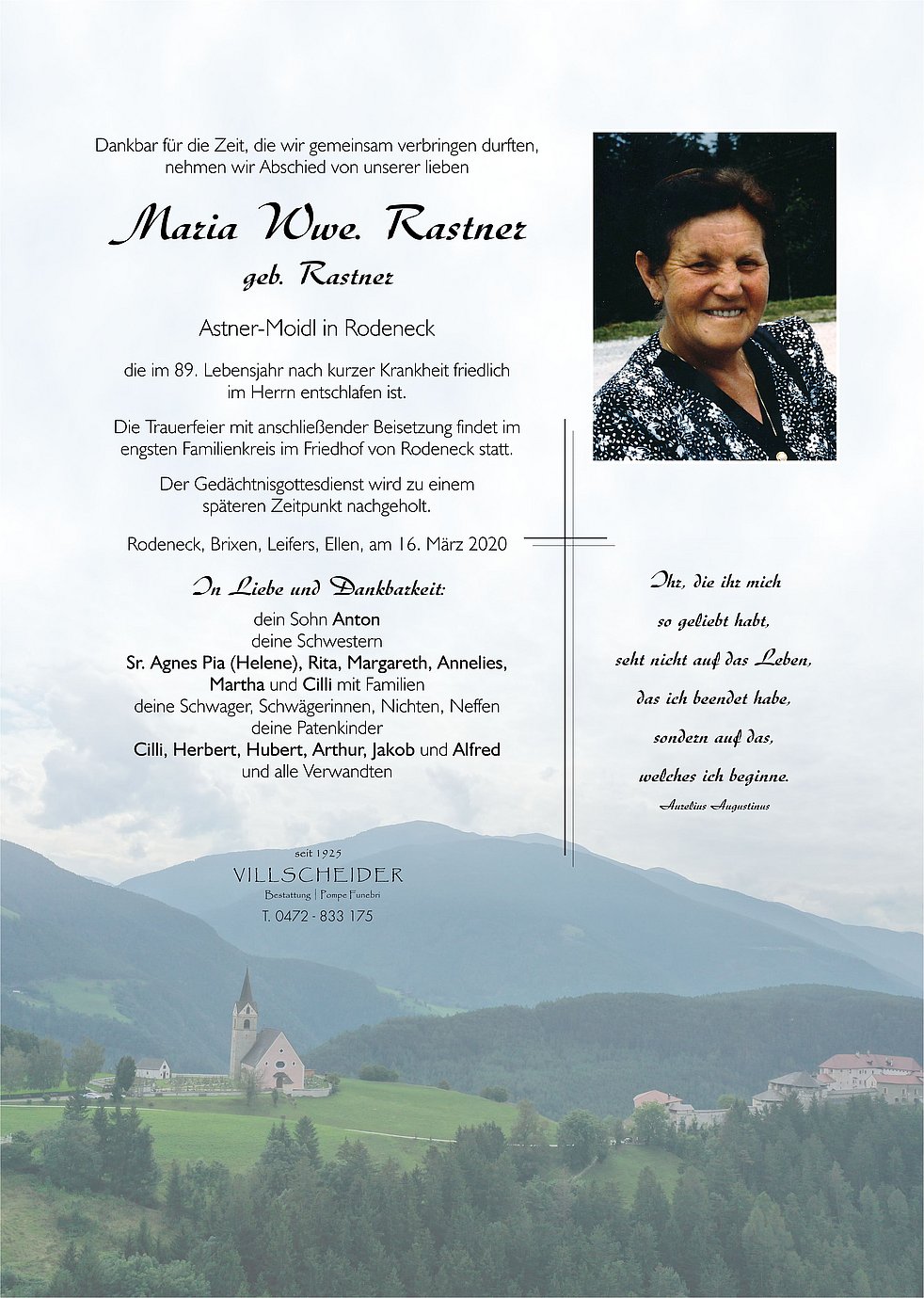 Die Moidl wird uns fehlen.Aber vor allem wird sie euch fehlen,an eurer Seite, in eurem Alltag. Für diese schwere Zeit wünsche ich euch allen viel Kraft. Im Gebet sind wir miteinander verbunden.