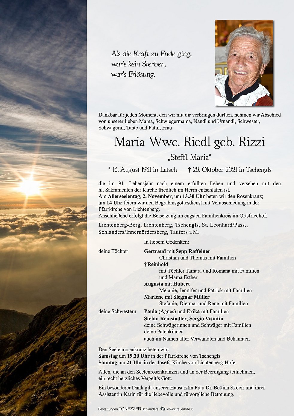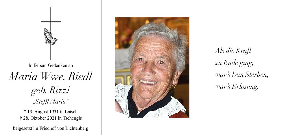 * 13. August 1931 in Latsch † 28. Oktober 2021 in Tschengls