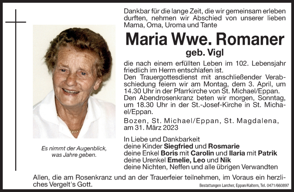 Den Trauergottesdienst mit anschließender Verabschiedung feiern wir am Montag, dem 3. März um 14.30 Uhr in der Pfarrkirche von St. Michael/Eppan.