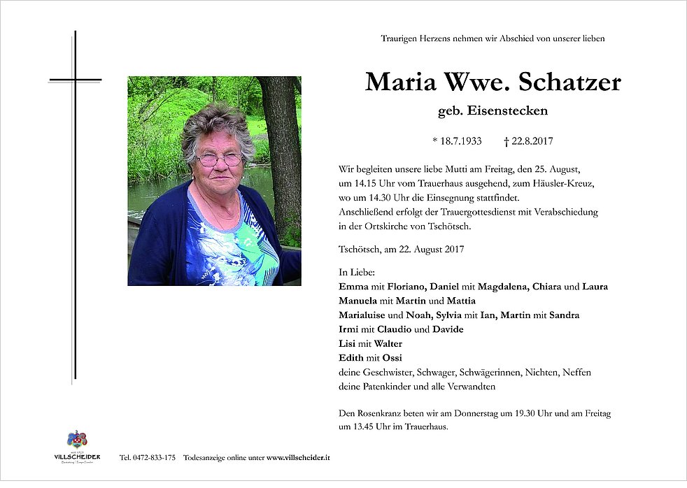 um 14.15 Uhr vom Trauerhaus ausgehend, zum Häusler-Kreuz,