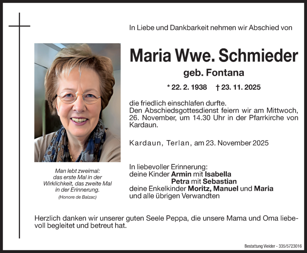 Herzlich danken wir unserer guten Seele Peppa, die unsere Mama und Oma liebevoll begleitet und betreut hat.