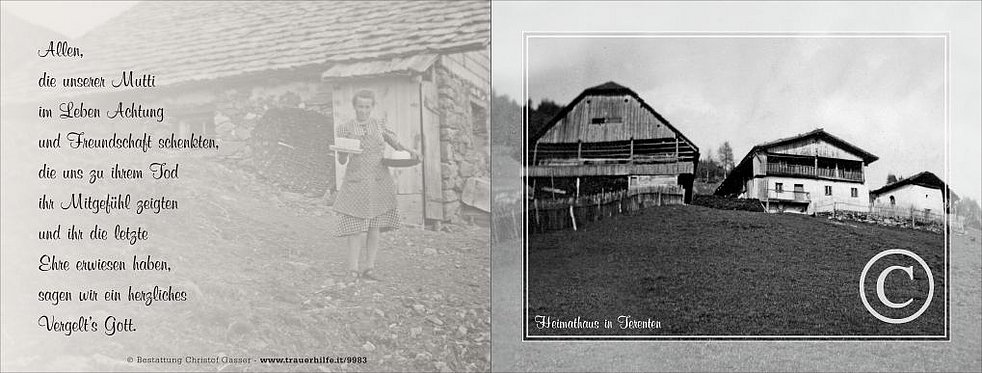 Allen, die an den Seelenrosenkränzen und der Beerdigung von unserer Mutti teilnehmen ein herzliches Vergelt’s Gott.