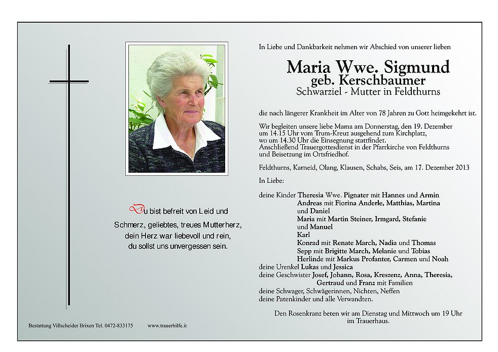 Wir begleiten unsere liebe Mama am Donnerstag, den 19. Dezember
