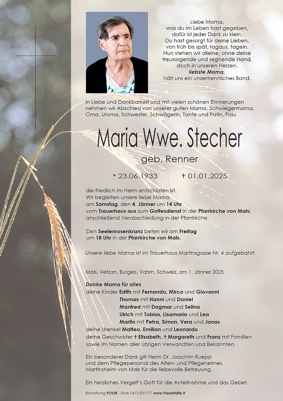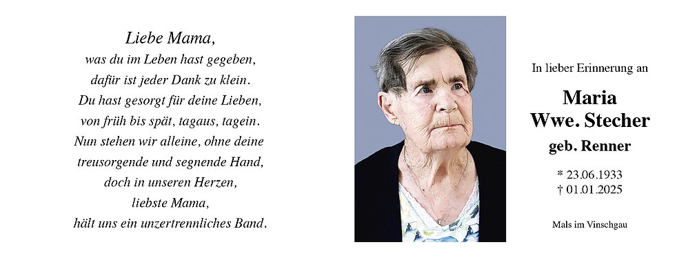 Unsere liebe Mama ist im Trauerhaus Martinsgasse Nr. 4 aufgebahrt.